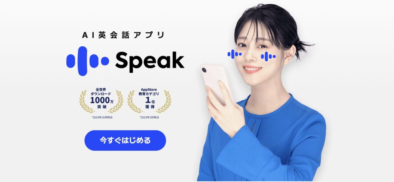 Speakは、24時間好きな場所でAI講師との英会話レッスンを受講できるスピーキング学習アプリ。